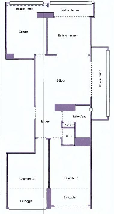 Un appartement de type F4, situé au 1er étage côté droit de l'immeuble 5 du bloc C, composé de 2 chambres, entrée, toilettes, salle d'eau, séjour, salle à manger, balcon fermé latéral, cuisine. D'une surace Loi Carrez de 52.36m².